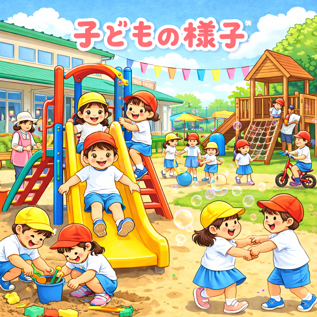 楽しい行事・イベント 一年を通して色々な行事・イベントを計画しています。様々な体験を通して心豊かな成長をうながしています。 食育 旬の素材を使った季節感のある給食を自園調理しています。食事を通して命の大切さを知り食への興味を育てます。野菜の育成や調理体験も行っています。 教室活動 英語・体操・絵画各分野の専任の講師の元、楽しんで色々な事にチャレンジできます。夢中になれる事を見つけることで、主体性・感性・社会性を育みます。 異年齢の子との関わり 開放的な保育室の中で異年齢の子どもとの関わりが多くあります。いたわりや思いやりの心を育てます。