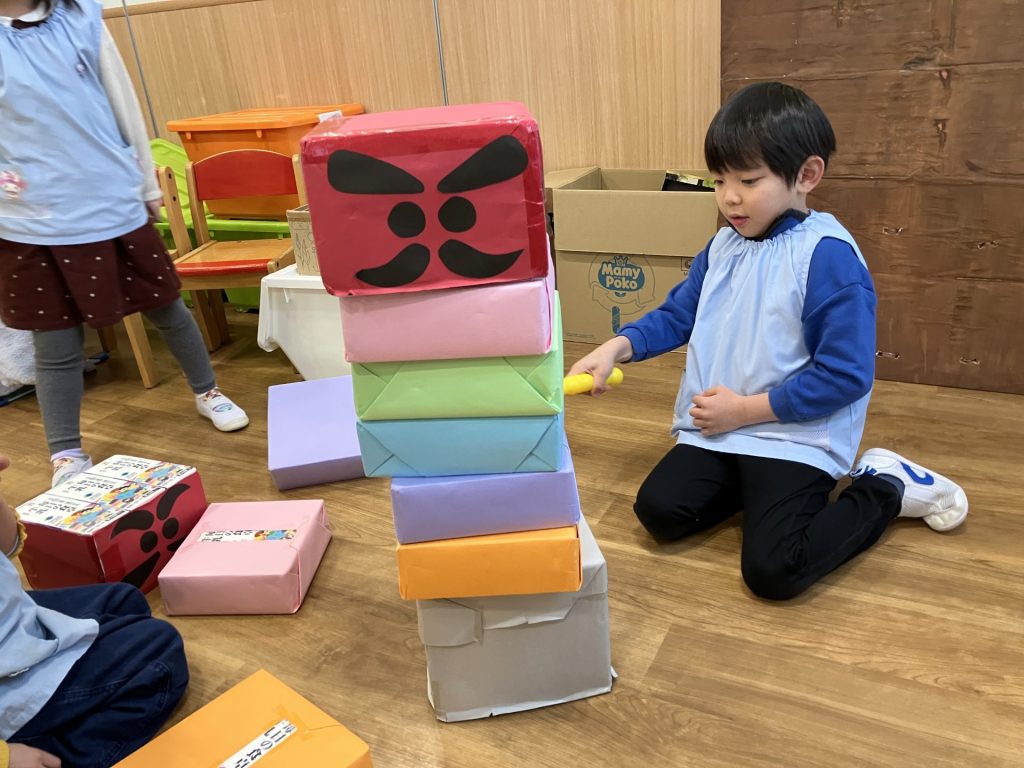 年始は、やっぱりお正月遊び!!!コマ回し、羽根つき、凧あげ、福笑いにすごろく…たくさんのお正月遊びを先生や友だちと一緒に楽しみました!!!今年も素敵な一年でありますように🌠 「それーーーー🔥🔥」 「落とせるかな、、💦そっとやってみよう!!」 「ドキドキ、、❤️❤️」 友だちに遊び方を教える姿も見られました🎵 「面白い顔になるかな~!?」 「せーの!!!」「難しいな、、🌀」 「1,2,3,4!!!」「ここだ!!」「次○○ちゃんだよ!!」